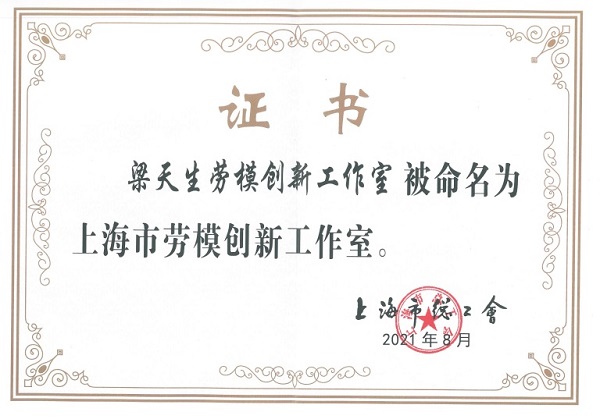 梁天生劳模创新工作室被命名为“上海市劳模创新工作室”