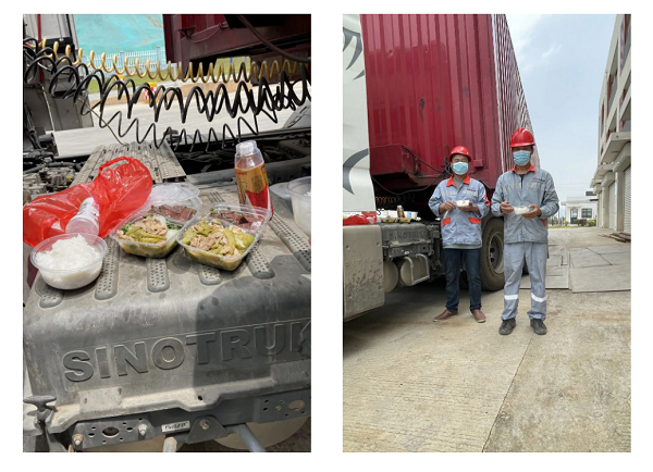 中机茂名对货运司机的关爱不止于此。货运司机们受到工作性质的影响,经常工作时长不一、地点变动频繁,停车和吃饭是他们常遇到的难题。在货运候等区,中机茂名为司机师傅们送上可口的饭菜,让司机们可以安心吃顿热乎饭再出发。
